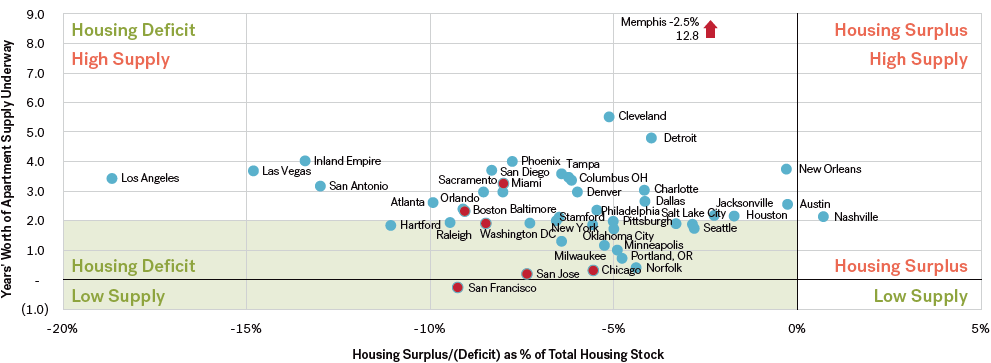 U.S. Apartment Markets Housing Surplus or Deficit as a Percentage of Total Number of Housing Units Relative to Years’ Worth of Supply